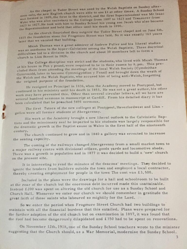 The history of the Baptist Church is quite interesting. I have booklet that was produced in 1978, from a centenary celebration, detailing the history of the Baptist in Abergavenny (attached photos see below).