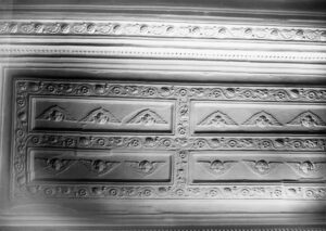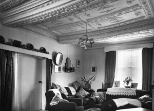 Access is obtained to the first floor by a circular staircase in 39A which is within the boundaries of the frontage of 40 and by a straight staircase in 37. The latter gives access to the dwelling accommodation for the Bosanquets and the circular staircase gives access to the famous “Cherub Room” – so called because of the plaster cherubs in the ceiling – and to further rooms over the top of 39 and 38 which provides a flat for the Philips brothers. The staircases continue to a second floor to provide further accommodation for these two families.