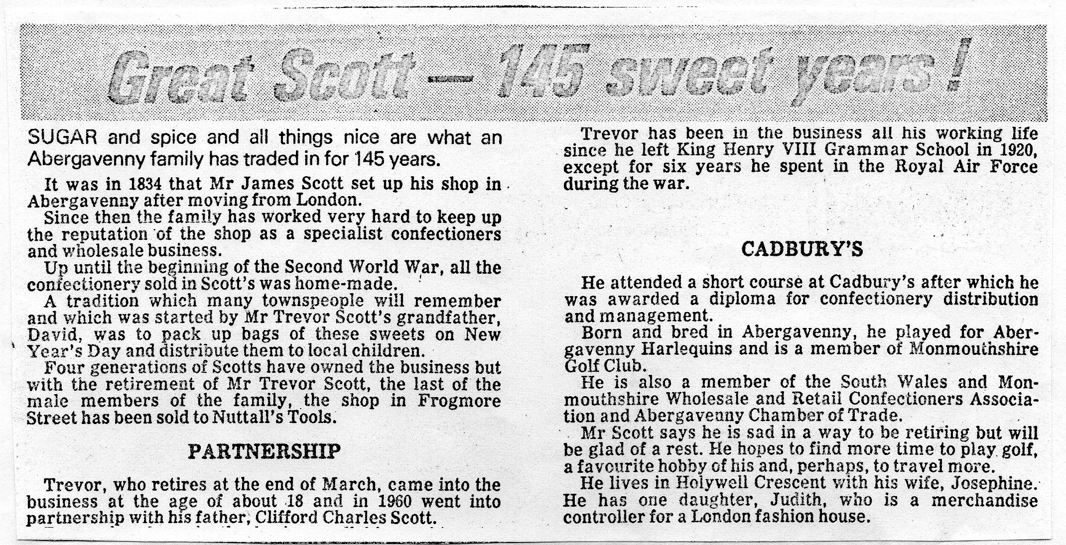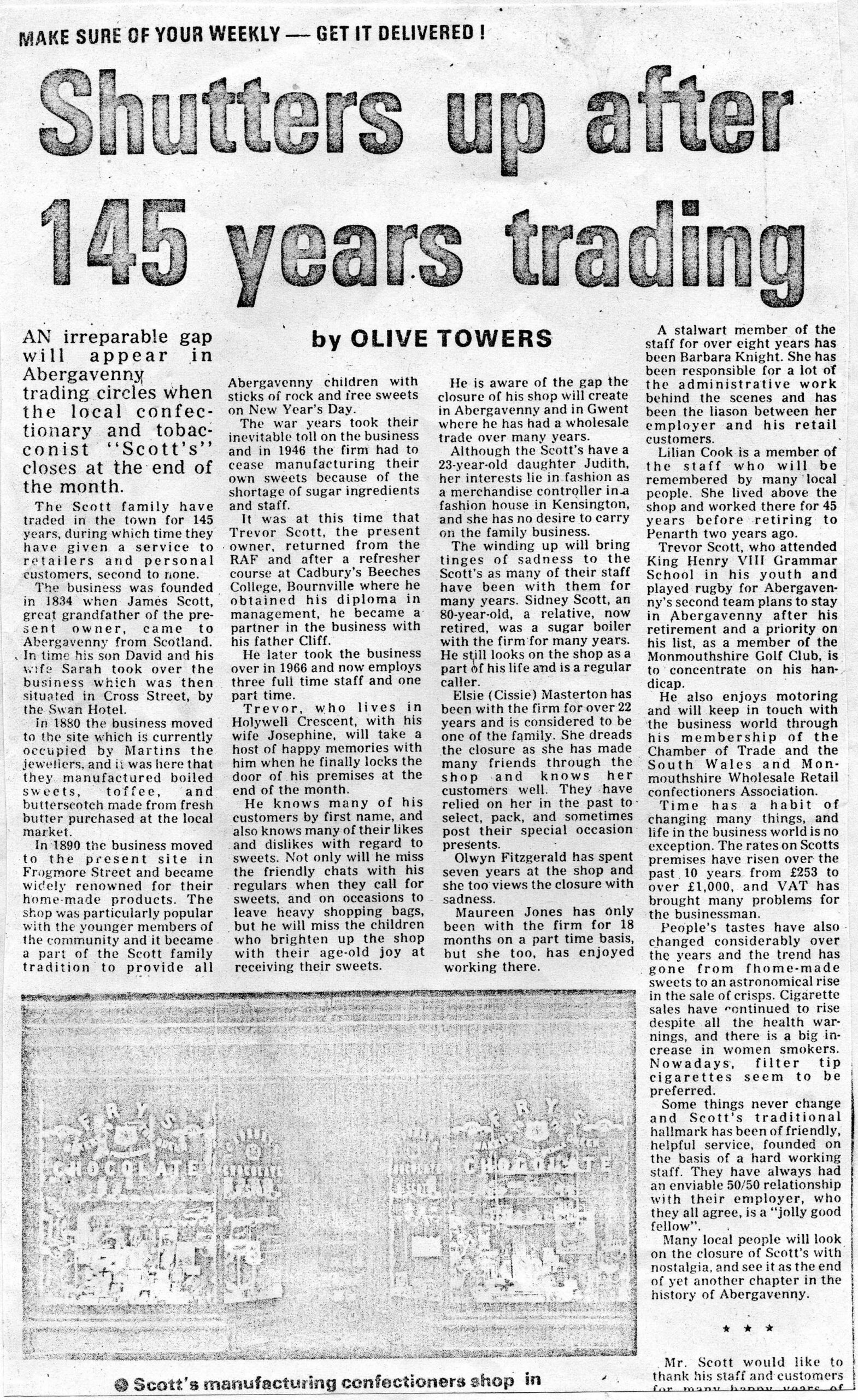 | 1970-1979 | FWC,TM & D M Scott | Confectioner | ALHS Survey 1980 |