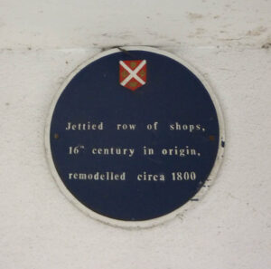 The original wooden supports of the overhanging upper floor were replaced by iron ones in the 19th century.