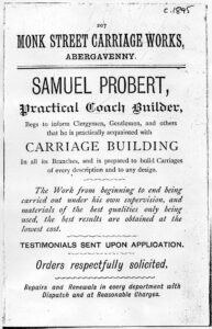 In 1891, Samuel Probert started his business when  he advertised his “New Carriage Factory”.